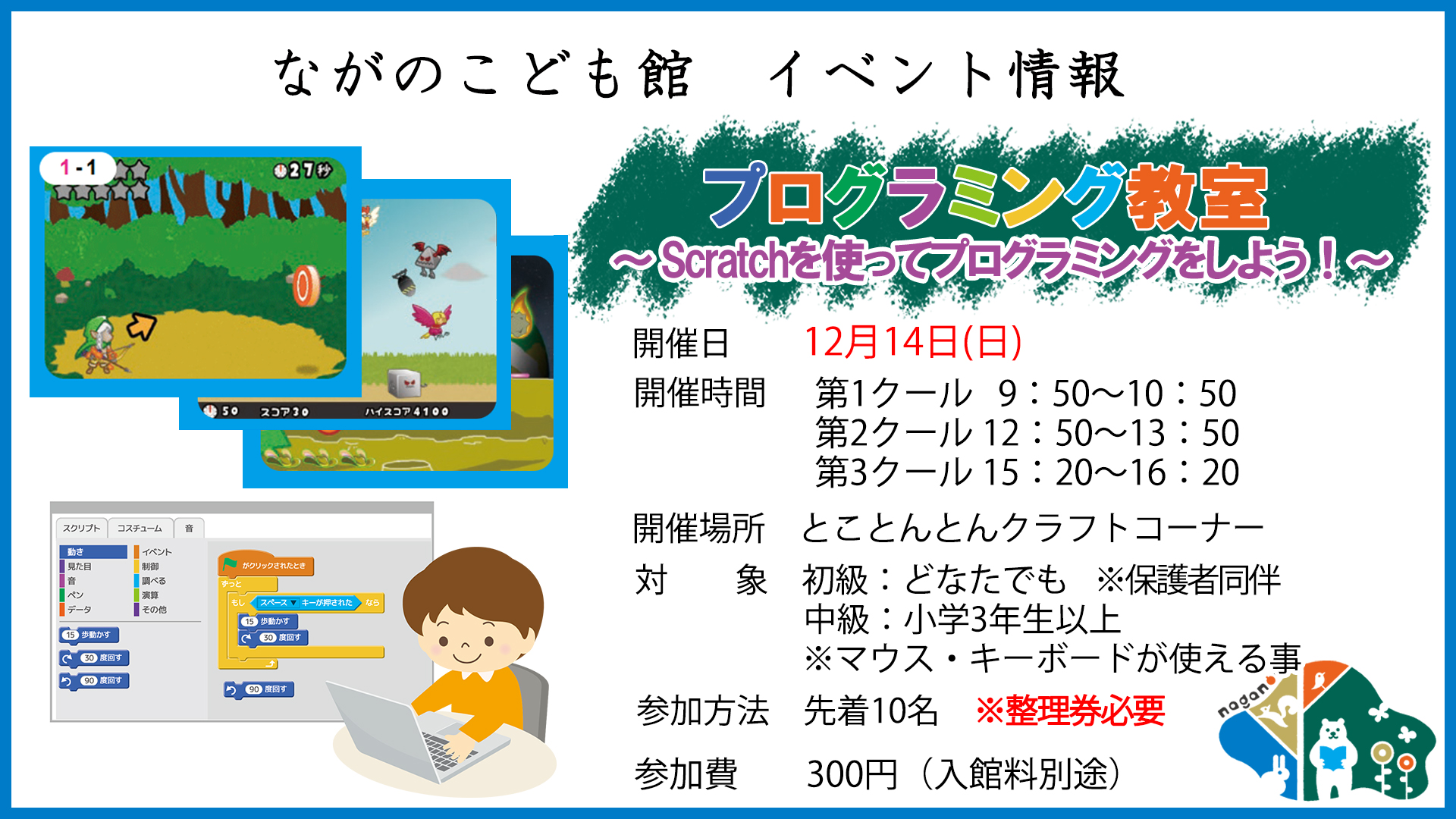 - 初級:どなたでも ※保護者同伴