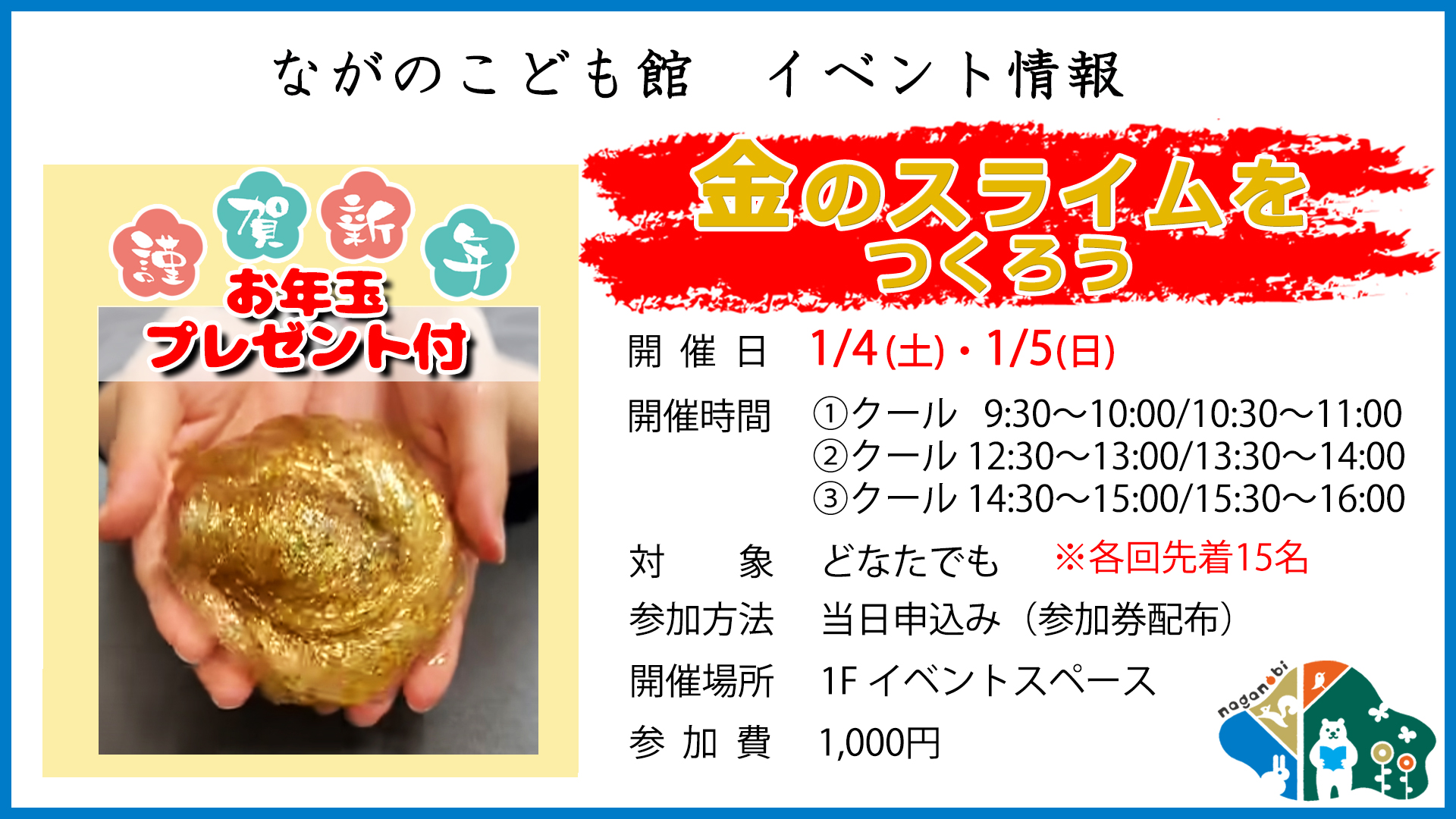 キレイなゴールドスライムをつくったあとは、お子さまに“お年玉プレゼント”も♪