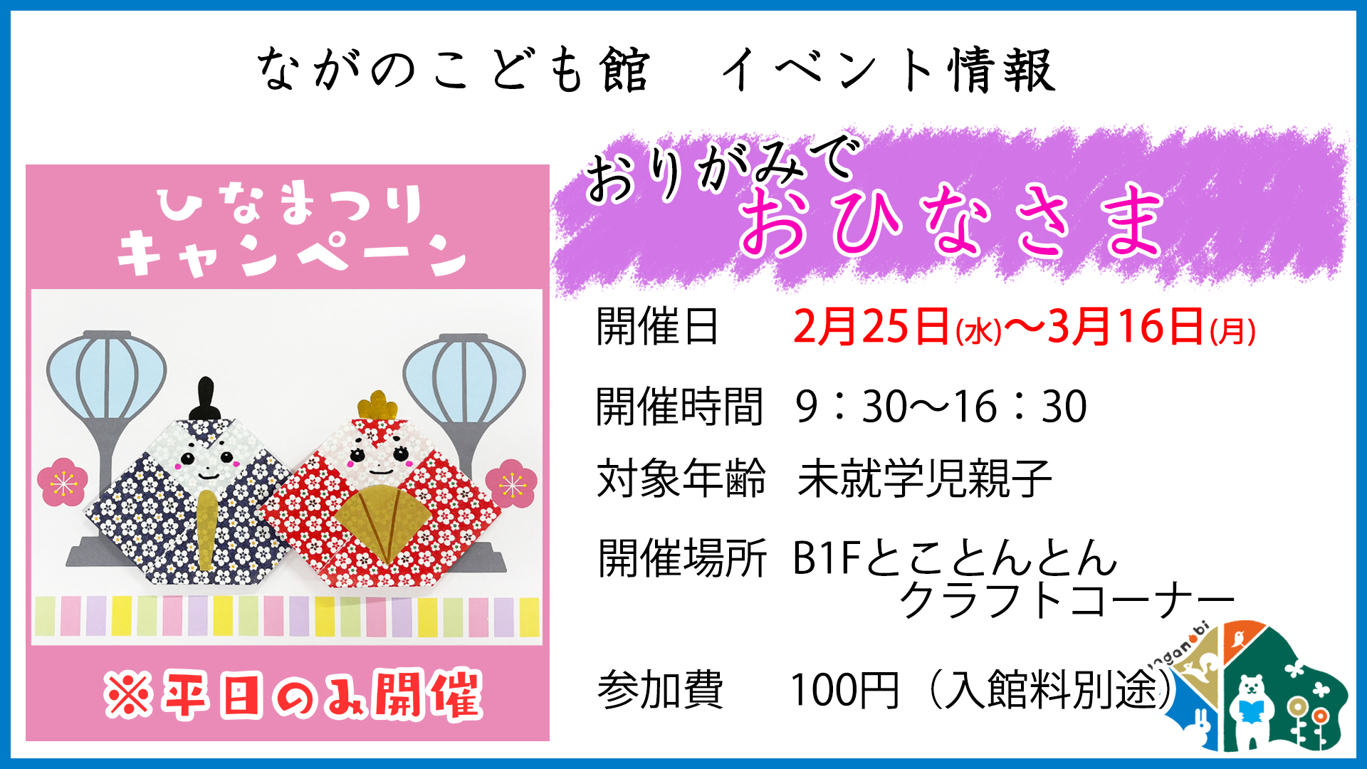 《平日開催》おりがみでおひなさま