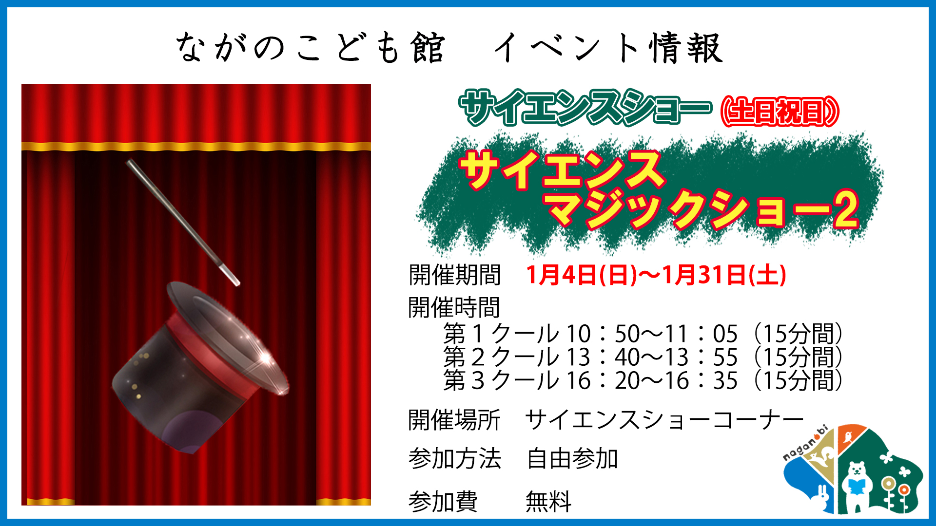 科学の力で起こる驚きの現象を、マジックのように楽しく紹介するショーを開催します!