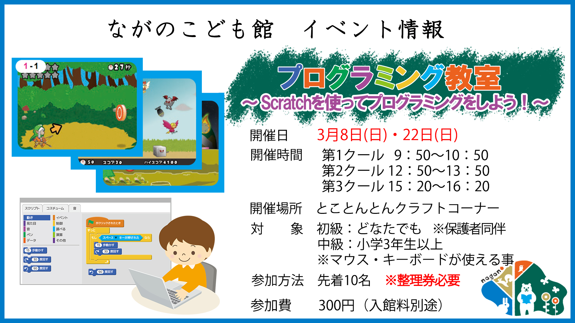 - 初級:どなたでも ※保護者同伴