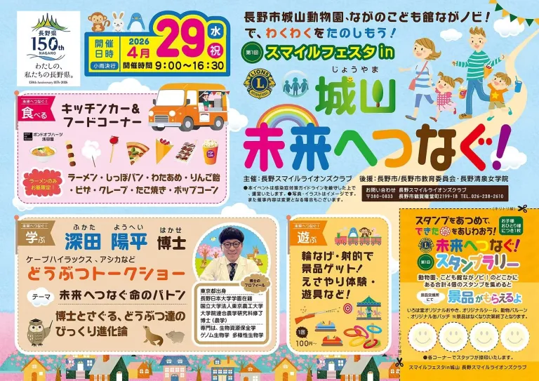 - 長野スマイルライオンズクラブ主催で「未来へつなぐ」を合言葉に、城山動物園とながのこども館ながノビ!で、