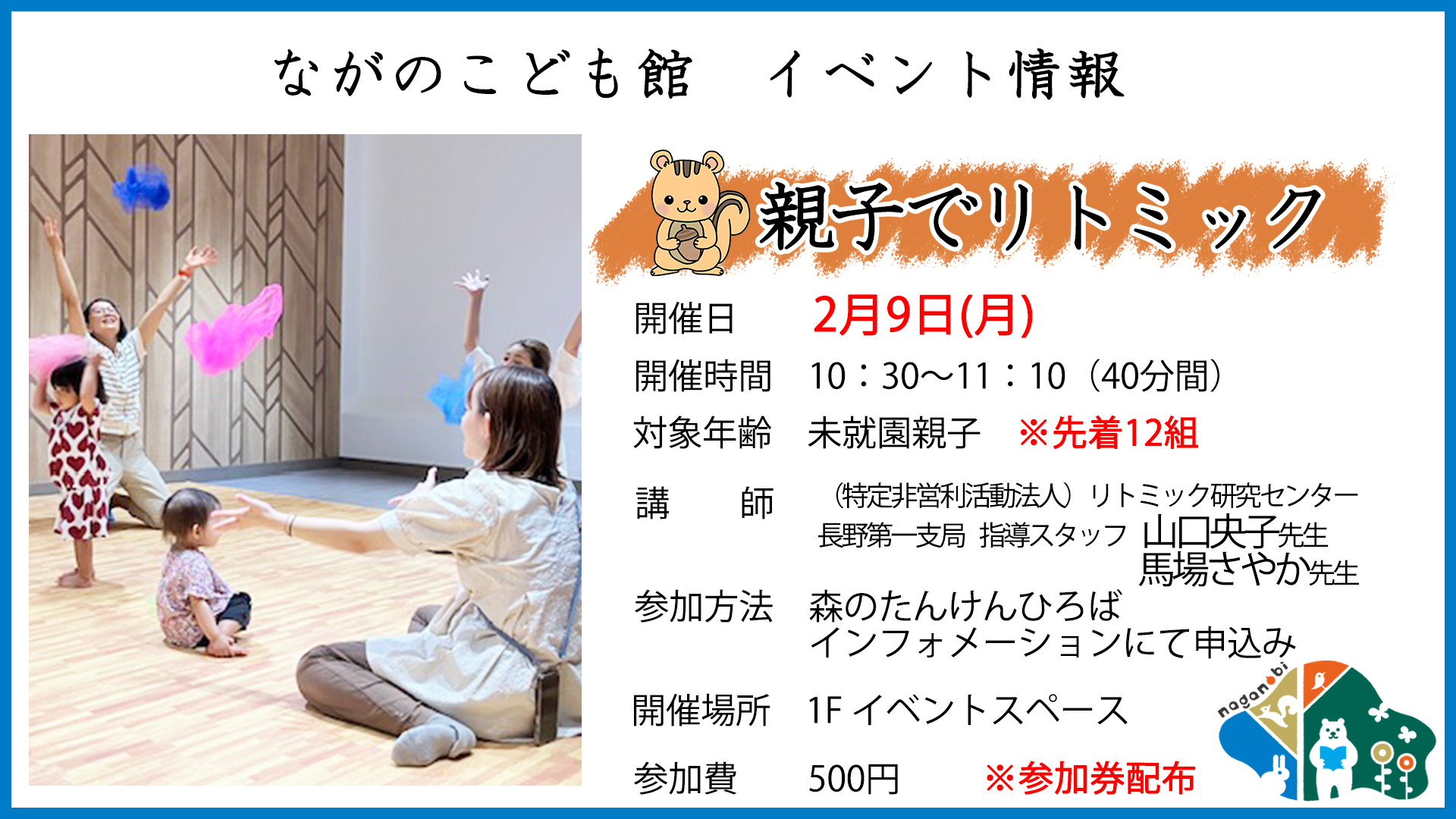 体を動かしながらリズムで遊んで、一緒に歌ったり踊ったり楽しい時間を過ごしましょう!