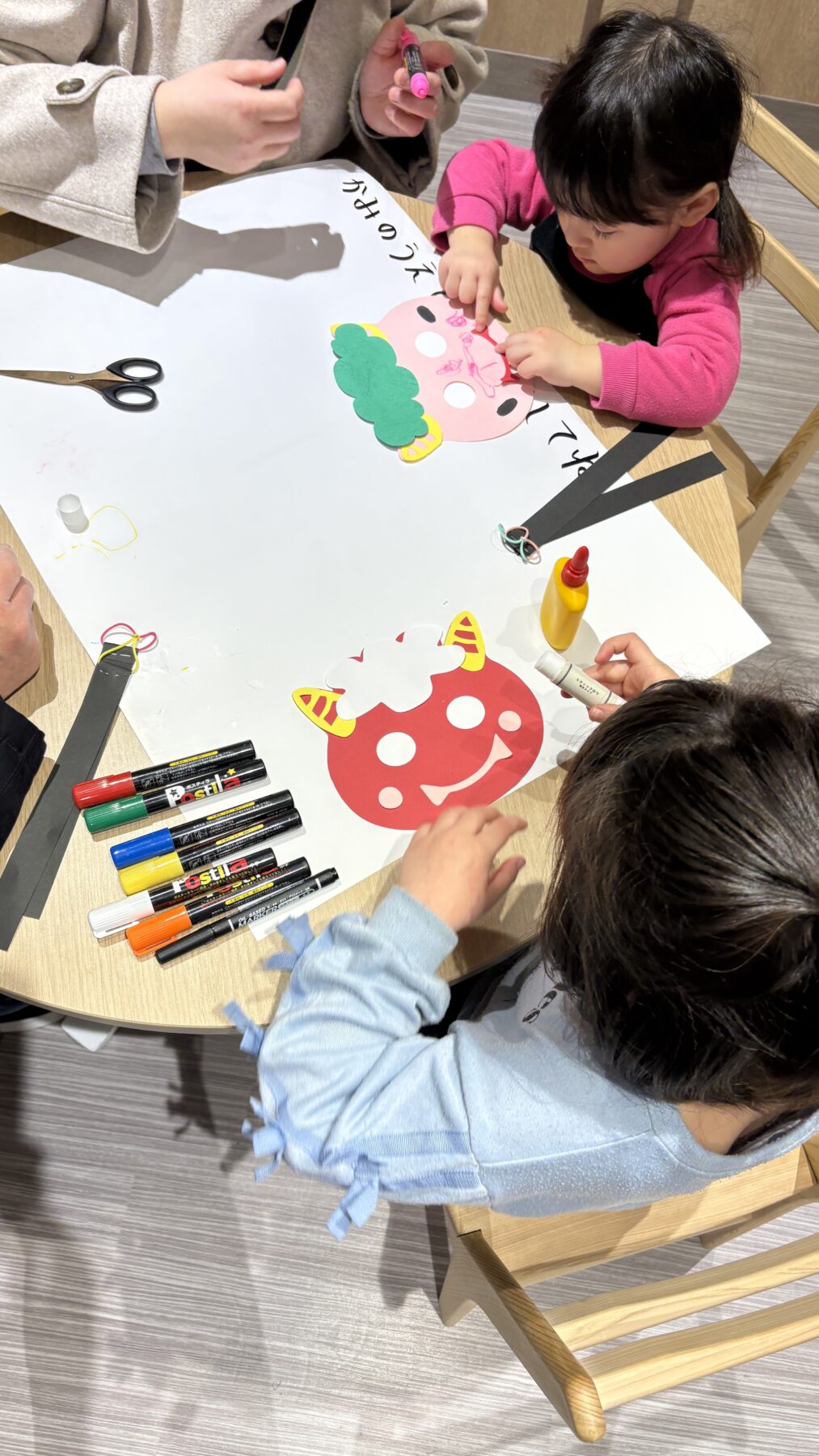 それぞれ工夫を凝らしたデザインで、個性あふれる鬼のおめんを完成させてくれました
