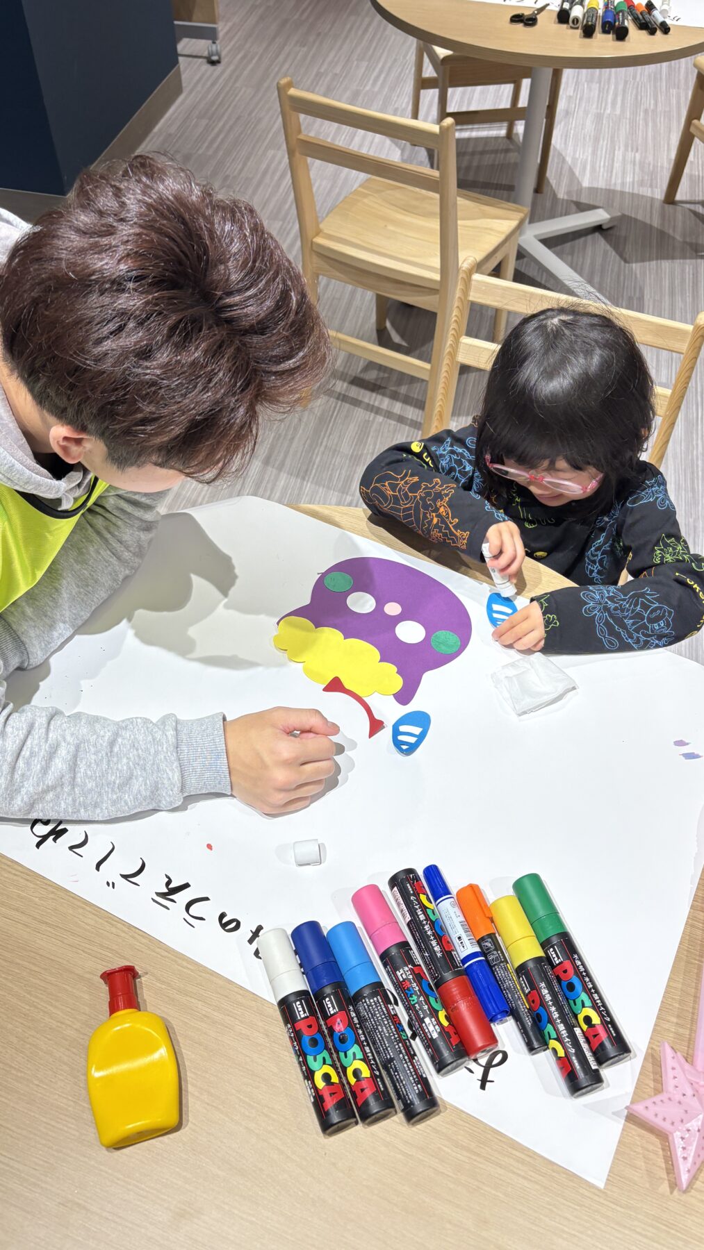 色や形を考えながら、一つひとつ丁寧にパーツを貼り合わせ、オリジナルの鬼のめんを完成!