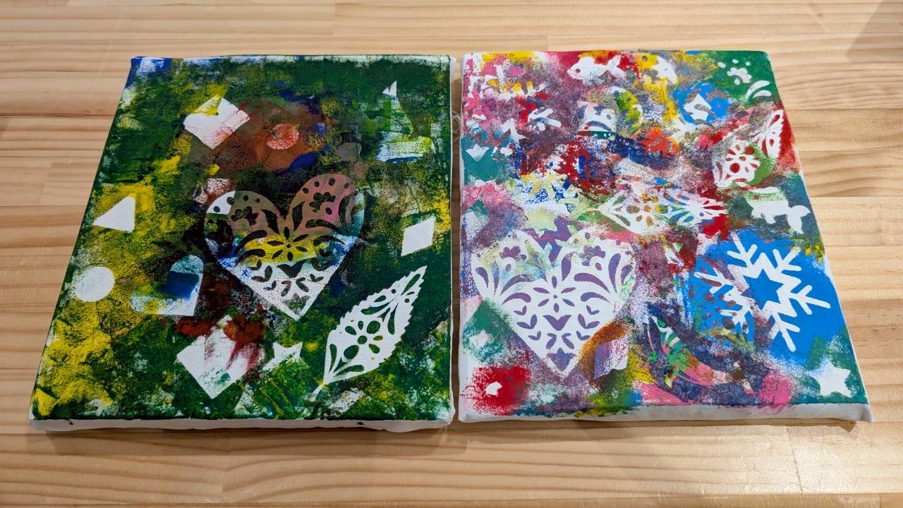 形が重ったり、色が混ざり合ったりするたびに歓声があがり、世界にひとつだけの作品が次々と完成しました。