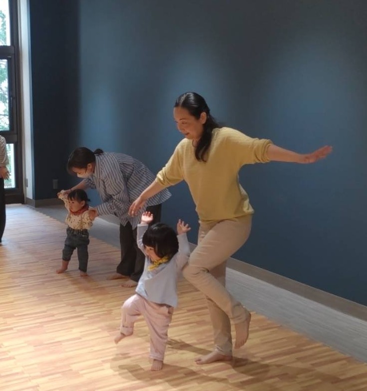 お母さんの動きを観察してバランスを取ったり、その場でくるっと回ったりと、子どもたちも一つひとつの動きに挑戦しました。